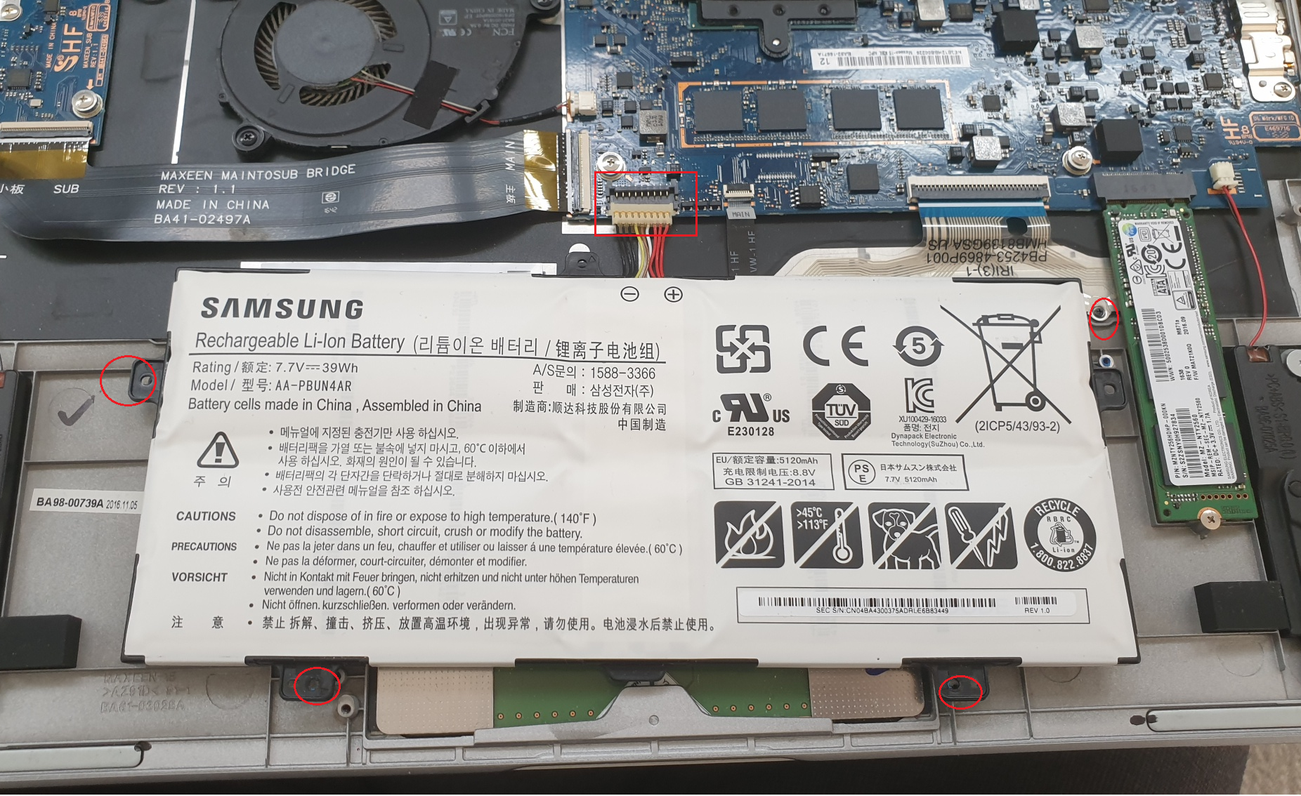 이 삼성노트북의 경우 배터리 교체가 아주 간단하네요. 배터리도 인터넷으로 쉽게 구할 수 있었습니다.