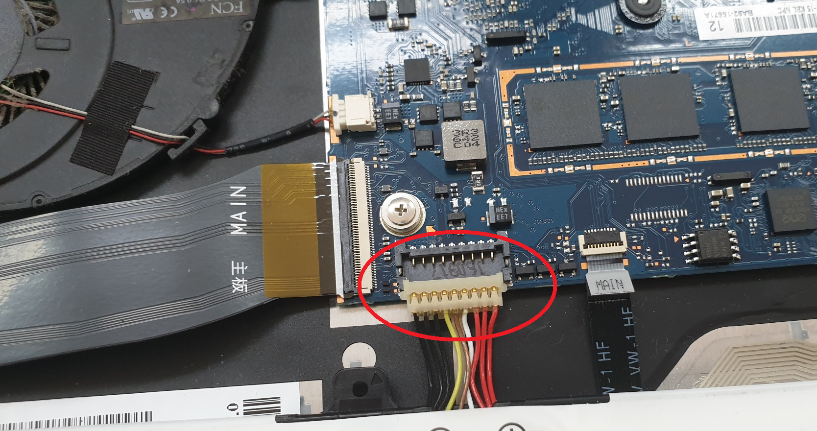 노트북 뒷 커를 열고, 배터리를 고정시키는 나사와 케이블을 분리합니다.