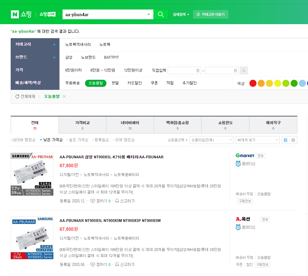 배터리 모델명: aa-pbun4ar